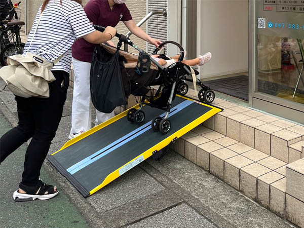 ご来院の車いすの方、ベビーカーを使用中の方、お体が不自由な方は当院のスタッフがスロープを設置いたします。お付き添いの方が受付にお声がけいただ